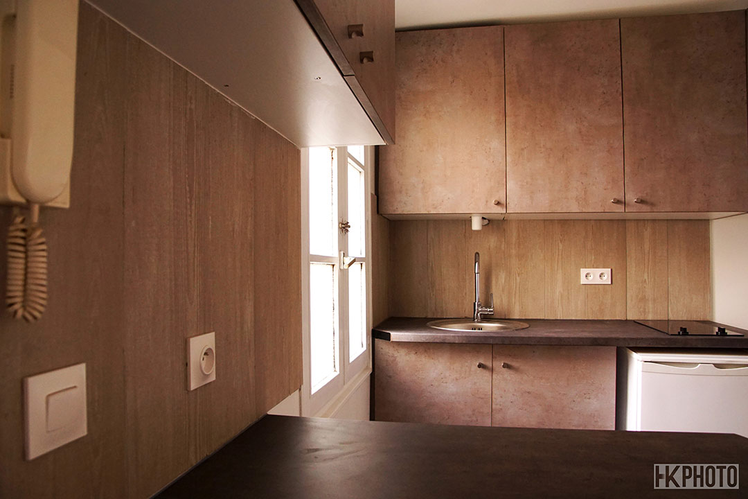 Transformation d'un studio en T2 - 25m2 rénové de A & Z : Démolition, plâtrerie, pose de cloison, agencement de l'appartement, pose de carrelage, création et montage de salle de bain, modification des branchements et évacuations d'eau, mise au norme de l'électricité, pose de fenêtres avec volets roulants sur mesure. Durée du chantier 30 jours. Visite possible sur demande.